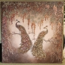 При желании можно нанести детальный трафарет третьим слоем и продублировать необходимые элементы более фактурно для выразительности. Посадить павлина можно на отдельный трафарет — колонну. ветку или просто создать ему достойное обрамление.