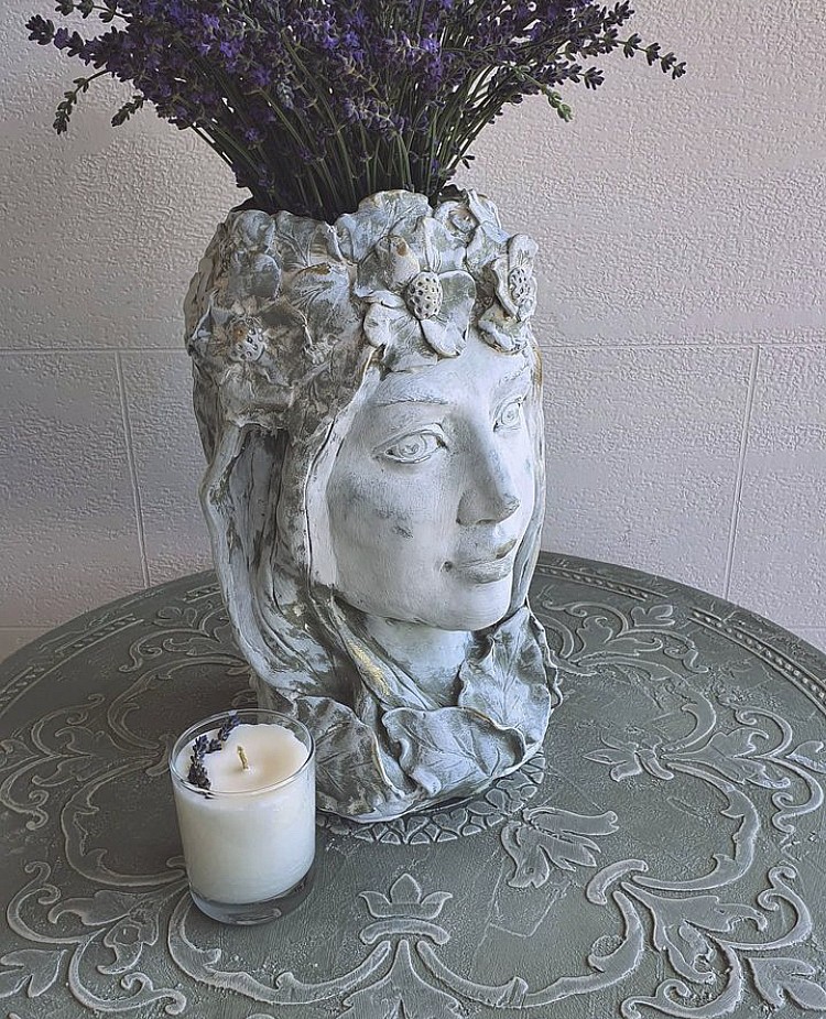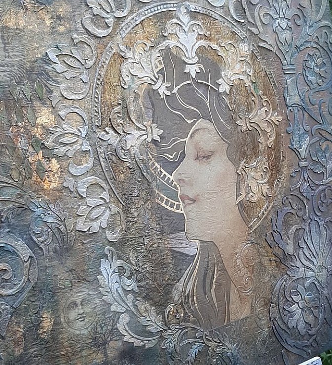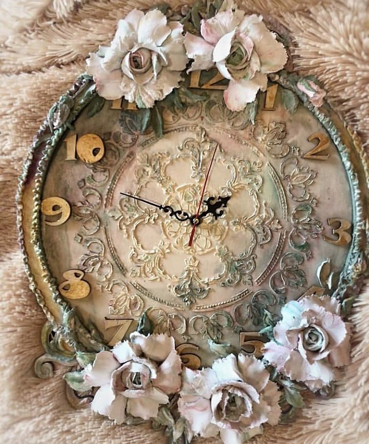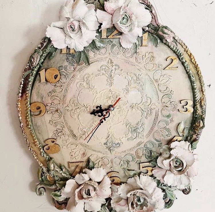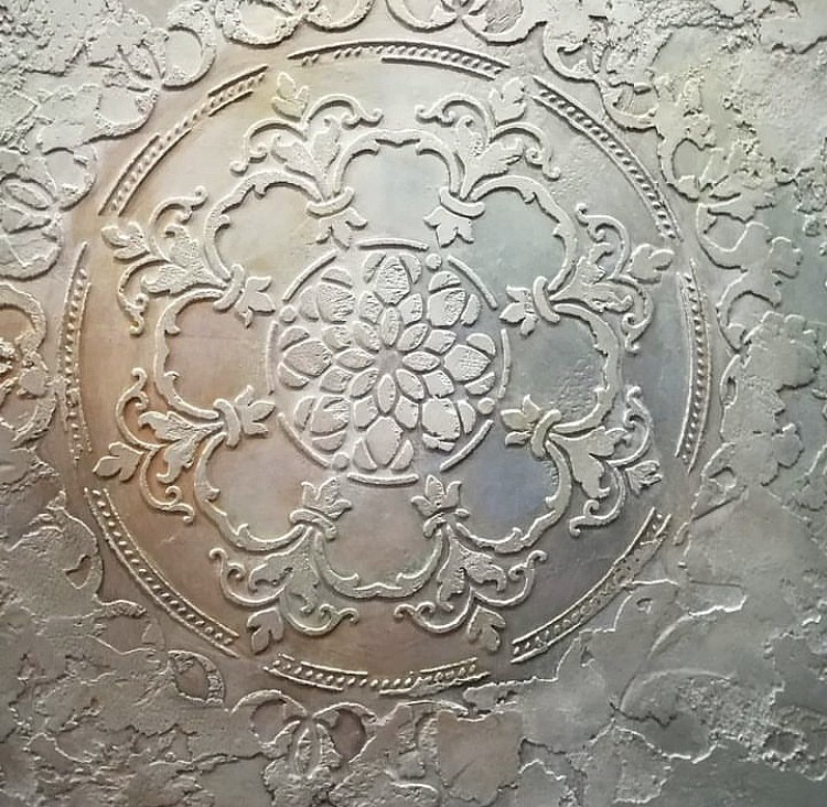 Этот трафарет моя особая Любовь! С помощью штукатурки наносила рисунок с помощью этого трафарета на стену, декорировала дверки на шкафу, тоже объёмный рисунок. Декорировала чехлы для подушек с помощью текстильной краски. Рисунок получается очень ажурным. На стене выглядит будто кружево.